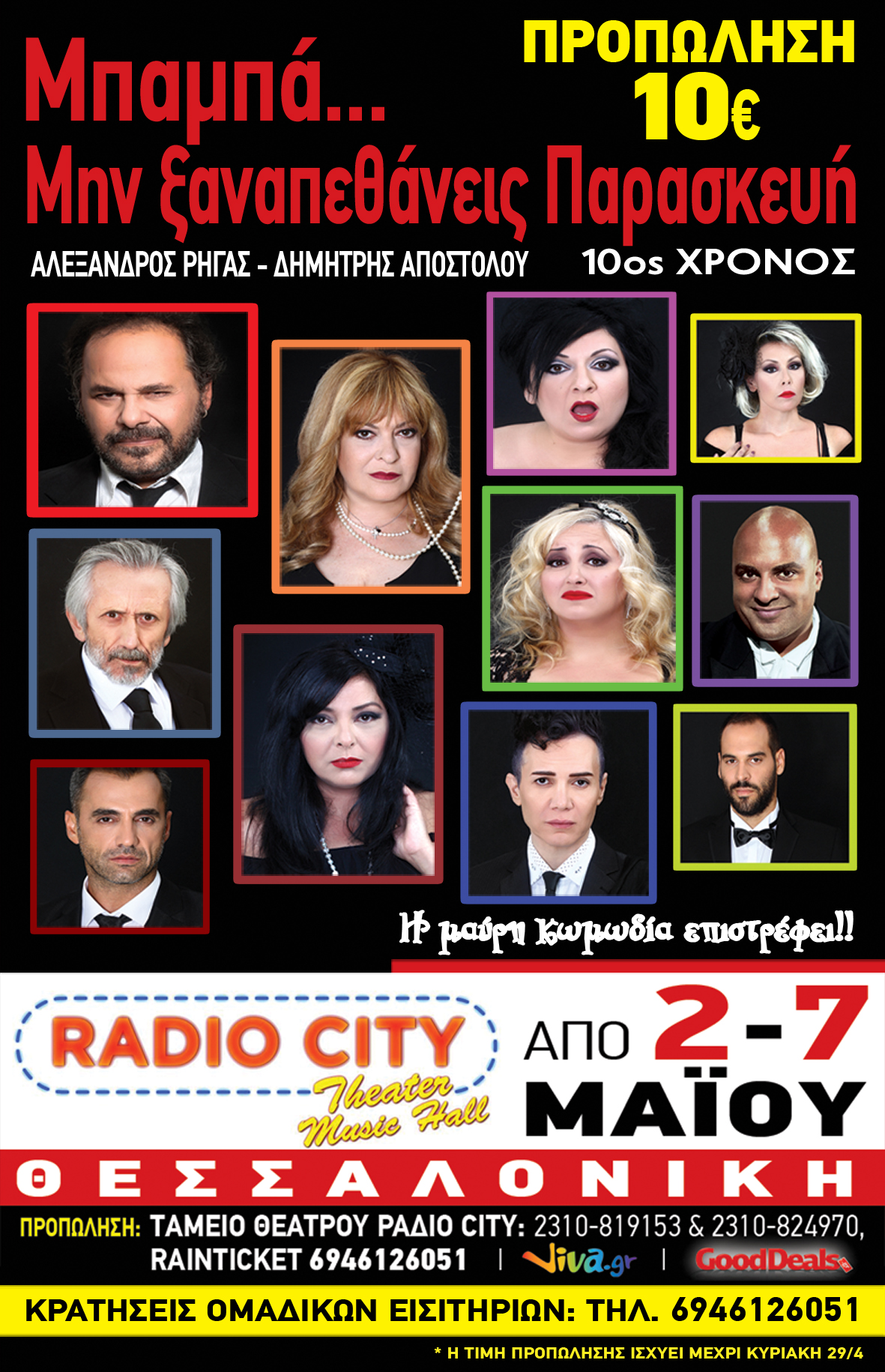 Μία από τις μεγαλύτερες καλλιτεχνικές και εμπορικές θεατρικές επιτυχίες της σύγχρονης Αθήνας, έρχεται στη Θεσσαλονίκη στο ΡΑΔΙΟ CITY από 2 έως 7 Μαίου. Μετά από μία τεράστια και τον φετεινό χειμώνα στο Θέατρο Ριάλτο – Αλέκος Αλεξανδράκης, με έναν θίασο που αποτελείται από τους πρωταγωνιστές